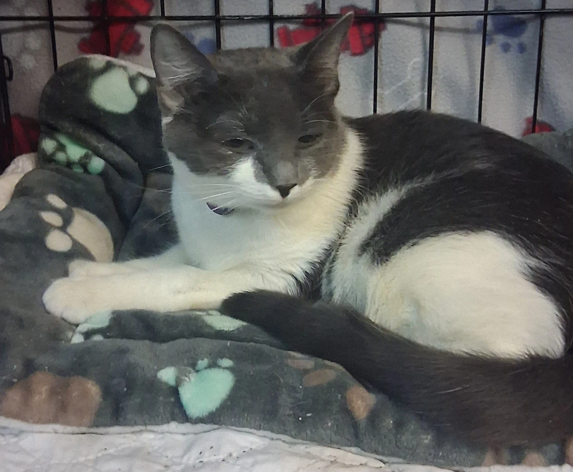 Stitch is a 3 year old, neutered, tested & previously declawed cat he is happy go lucky. Gets along with dogs but no cats please.