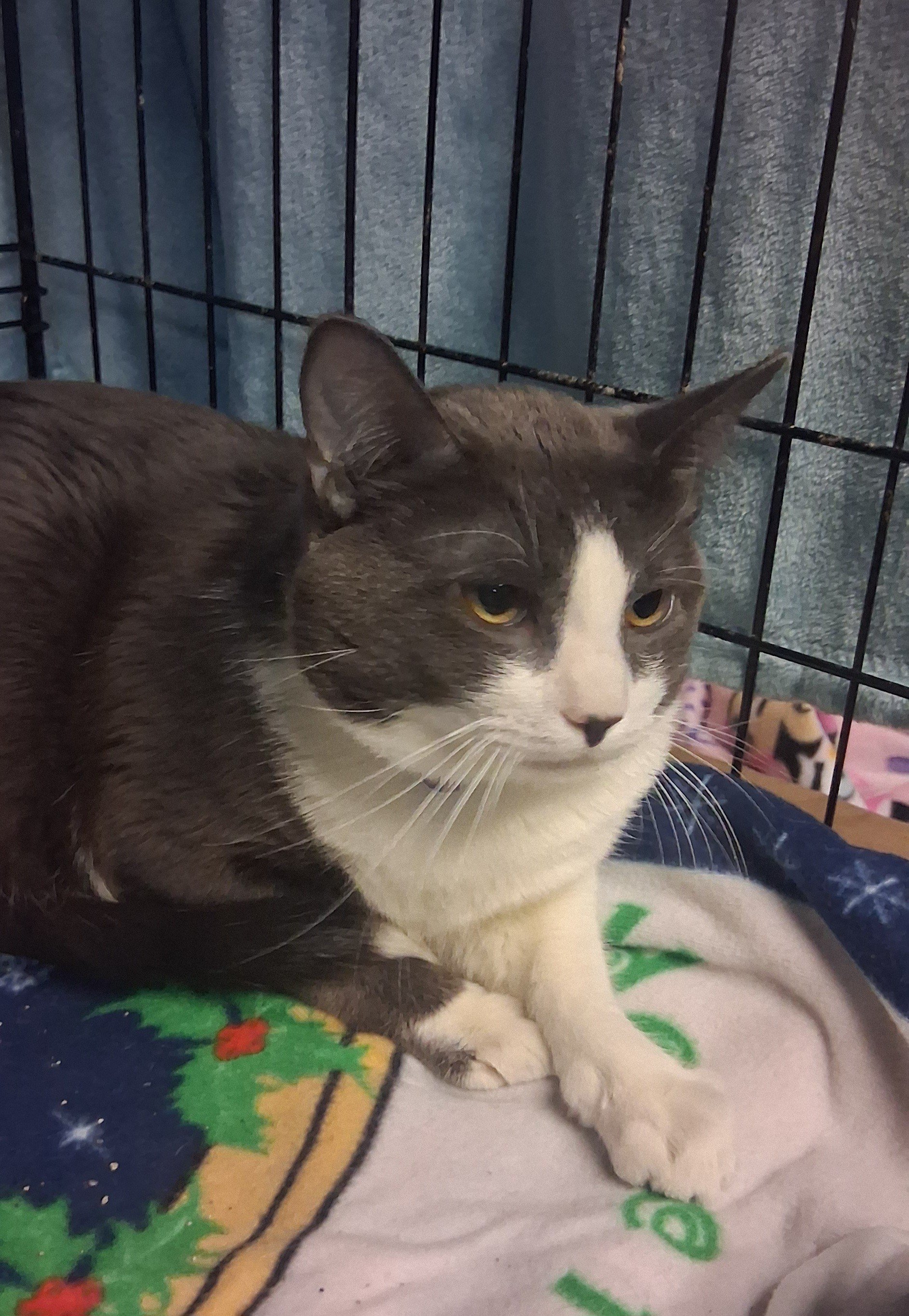 Bella is 9 years old. A nice quiet girl fully vetted and she would do well in a home with another calm cat.